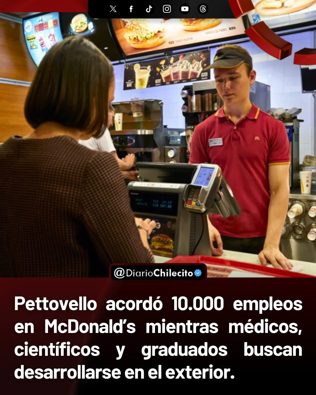 ● La ministra de Capital Humano, Sandra Pettovello, firmó un convenio con Arcos Dorados, operadora de McDonald’s en Argentina, para contratar 10.000 personas en todo el país. La escena: locales llenos de carteles de “se busca personal”, mientras pasillos de universidades siguen vacíos de empleo para sus egresados.