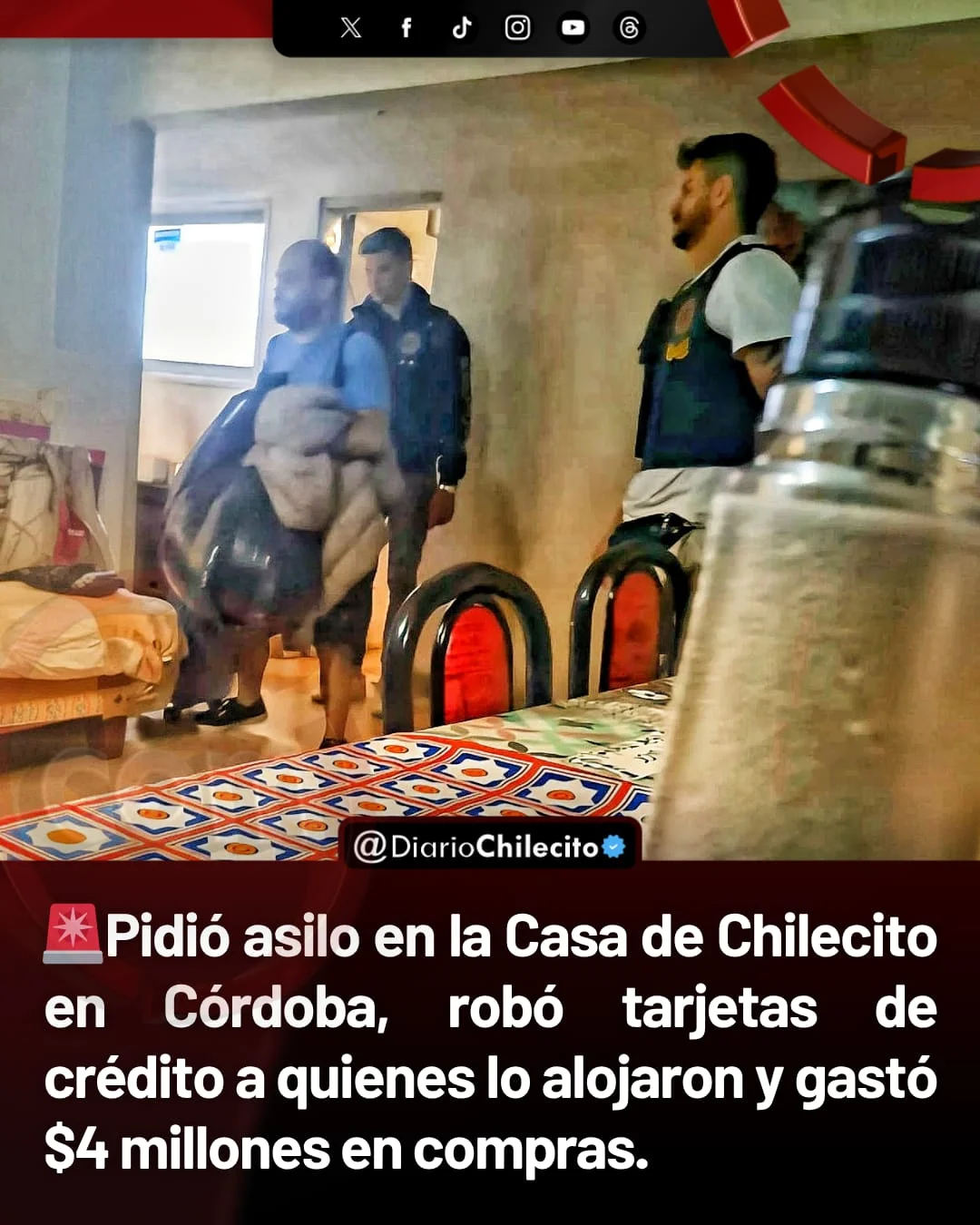 ● Un chileciteño de apellido Illanes se alojó a fines de septiembre en la Casa de Chilecito en Córdoba y habría sustraído tarjetas de crédito de las personas que lo recibieron. El hecho ocurrió tras ganarse la confianza de las mujeres encargadas del lugar, con un relato falso de necesidad.