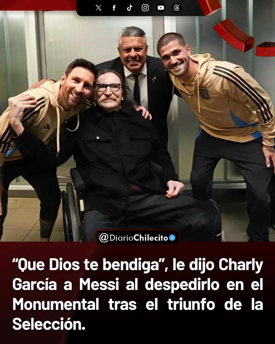 ● La imagen de Messi y Charly juntos se viralizó en redes como símbolo del cruce entre dos íconos argentinos. La AFA destacó el momento y los hinchas multiplicaron los posteos. Lo que queda ahora es la incógnita de cómo seguirá la relación de Messi con la Selección tras su despedida en casa.