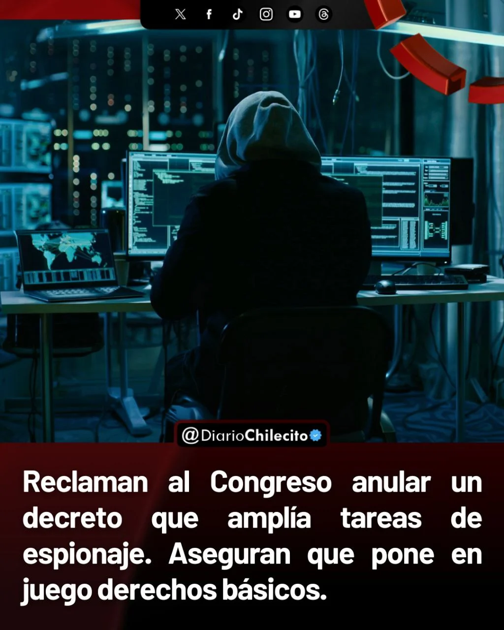 ● Casi veinte organizaciones sociales y de derechos humanos pidieron que el Parlamento deje sin efecto una medida del Ejecutivo que modifica el sistema de inteligencia. Alertan que afecta libertades básicas y puede impactar en la vida cotidiana de cualquier persona.