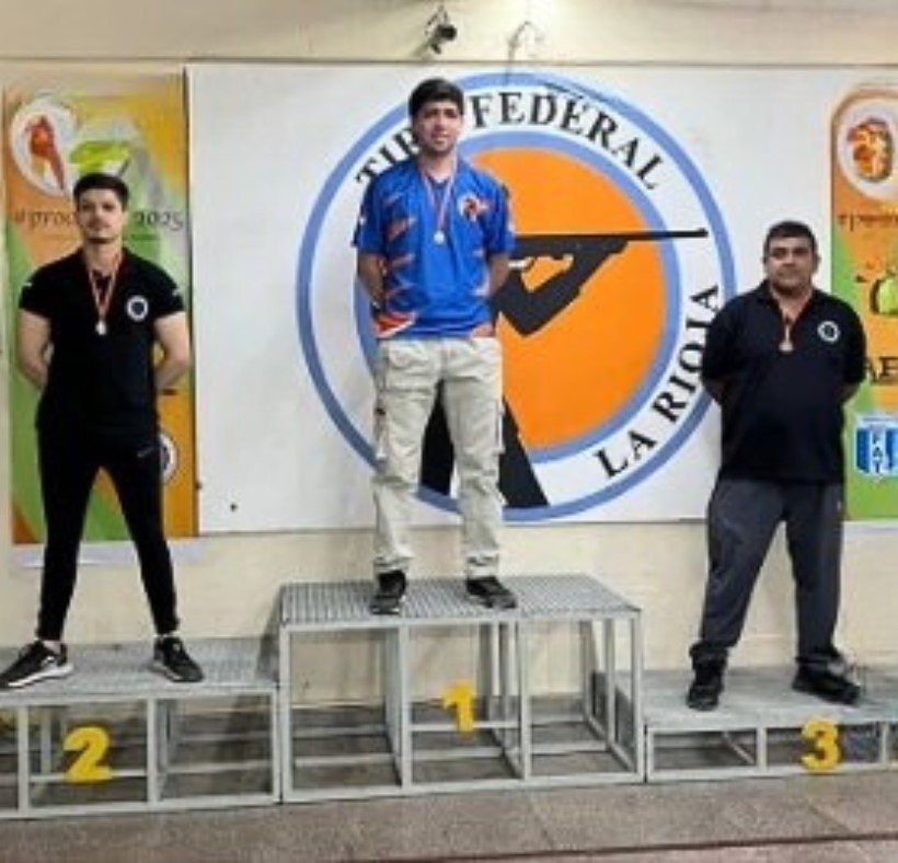 Los representantes del Tiro Federal de Chilecito, Jonathan Gómez y Agustín (apellido no mencionado en el audio), lograron subirse al podio en la categoría de carabina de aire comprimido, en un torneo realizado en el Tiro Federal de la Capital riojana. Jonathan Gómez obtuvo el tercer puesto con 260 puntos, mientras que su compañero se quedó con el segundo lugar al conseguir 262 puntos.