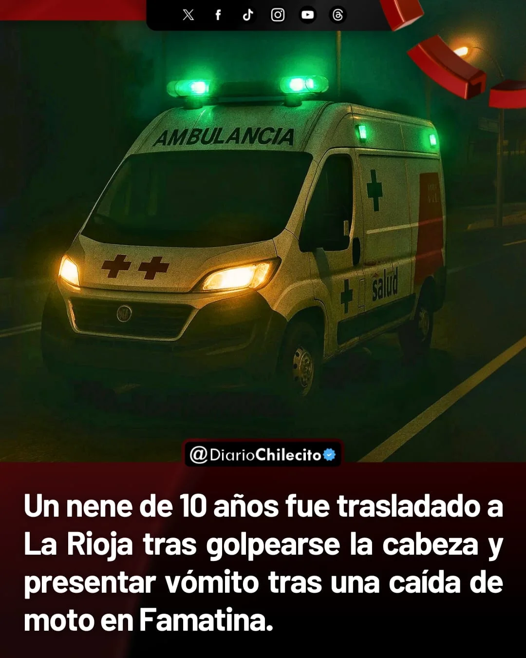 ● “Perdió el conocimiento y vomitaba”, detallaron desde el hospital. La doctora Griselda Vergara dispuso primero su traslado a Chilecito y luego a la ciudad Capital de La Rioja para estudios de mayor complejidad.