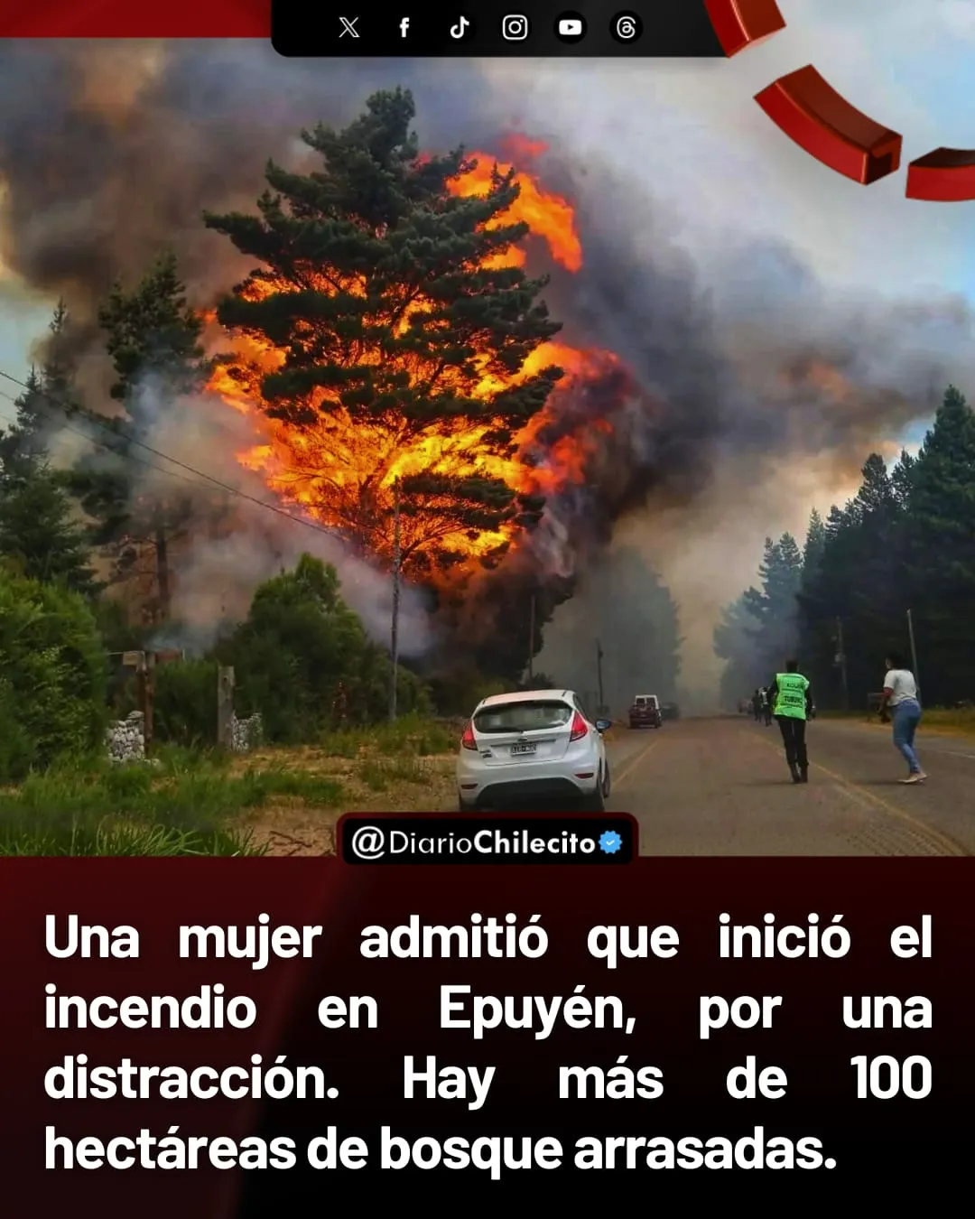 Una mujer admitió que inició el incendio en Epuyén, por una distracción. Hay más de 100 hectáreas de bosque arrasadas.